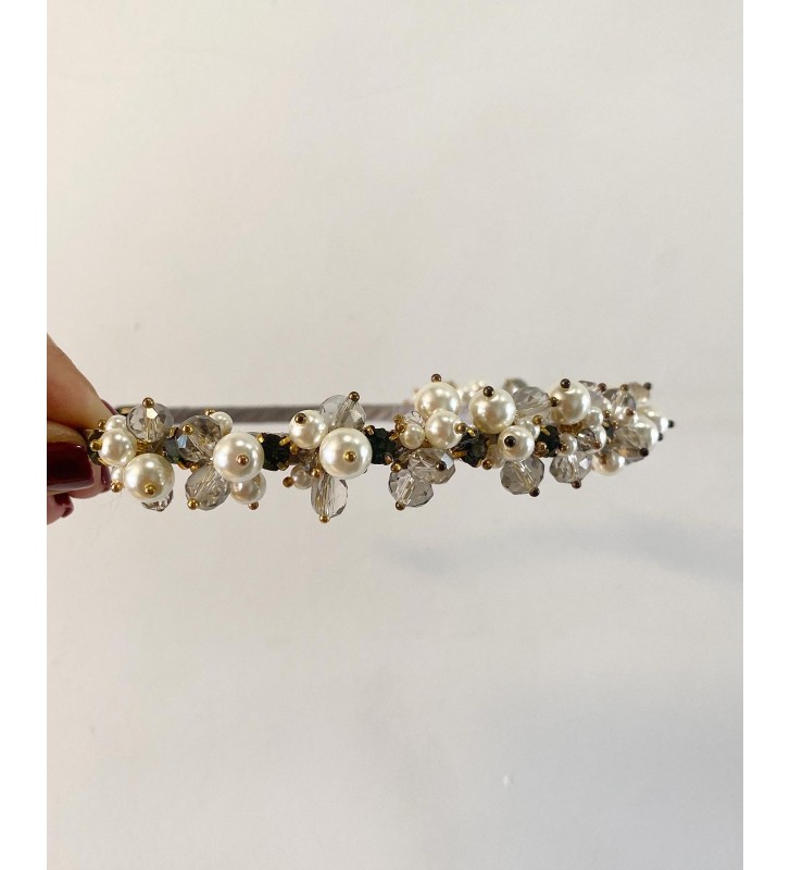 Doğal inci ve zirkon taş kullanılmıştır.